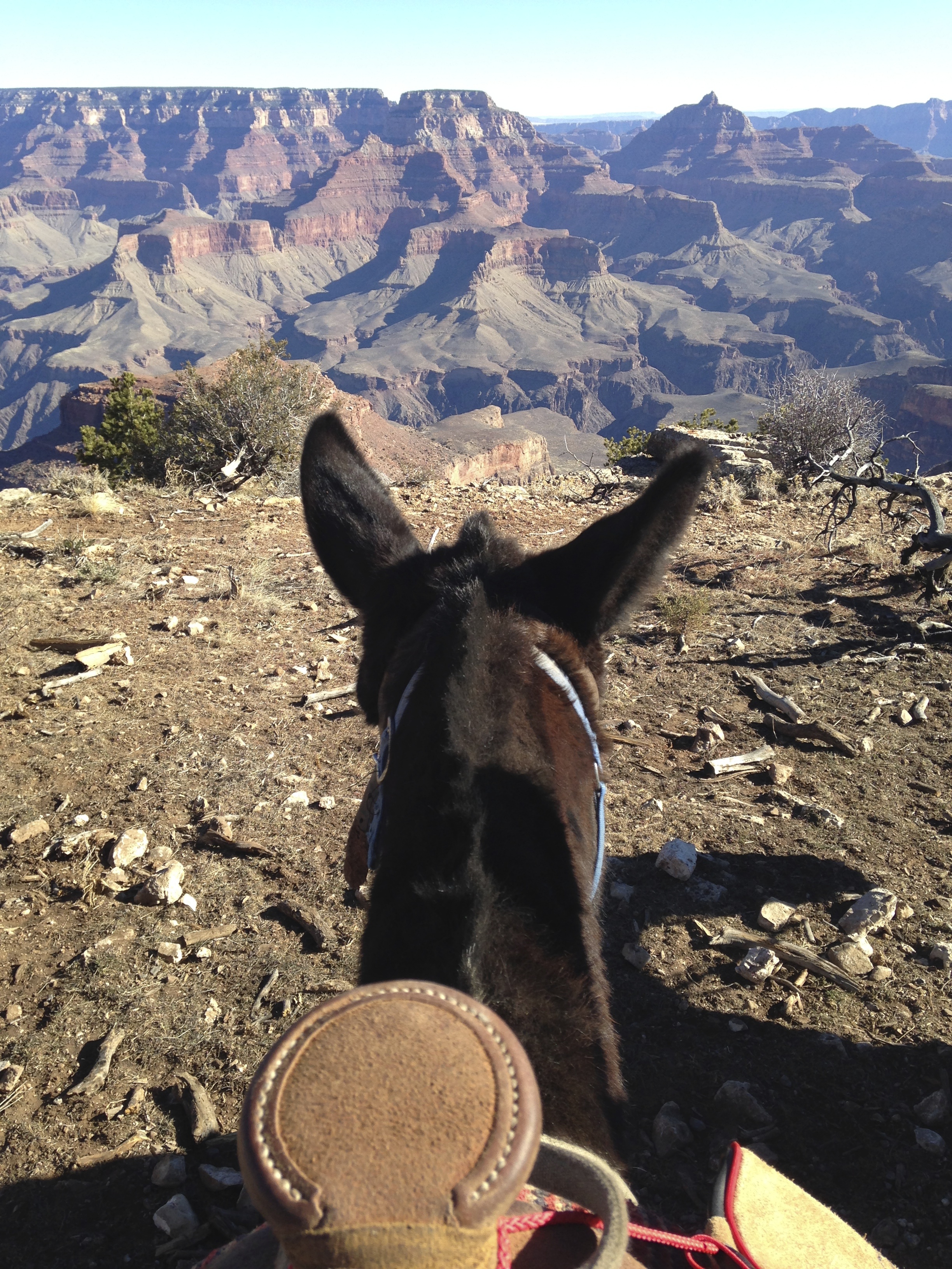 After sunset, we watched the Imax theater’s version of the Grand Canyon’s history, enjoyed dinner, watched Downton Abbey, and collapsed into bed. Next morn, we met our mules.