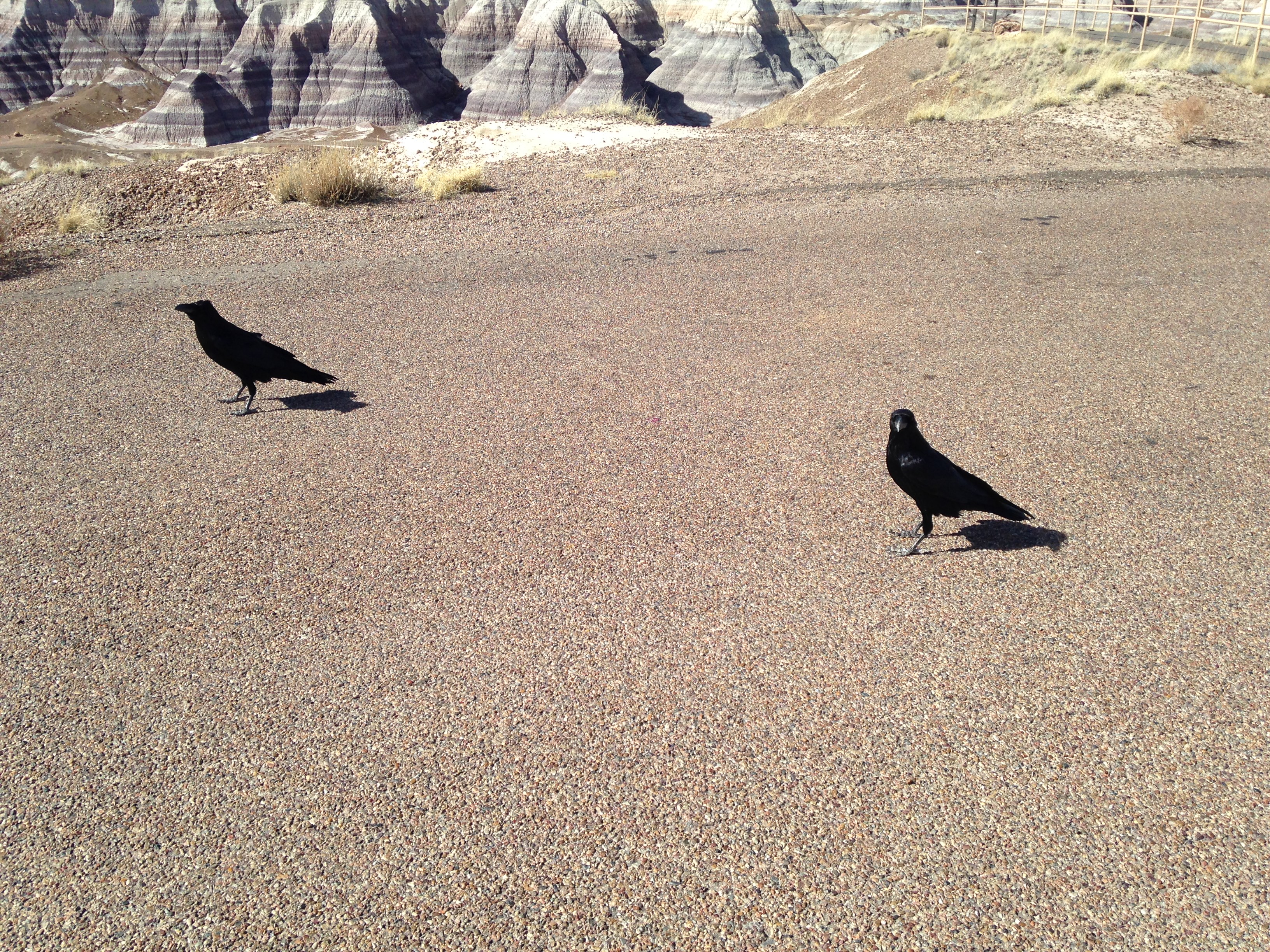 Feeding black crows at the Petrified Forest