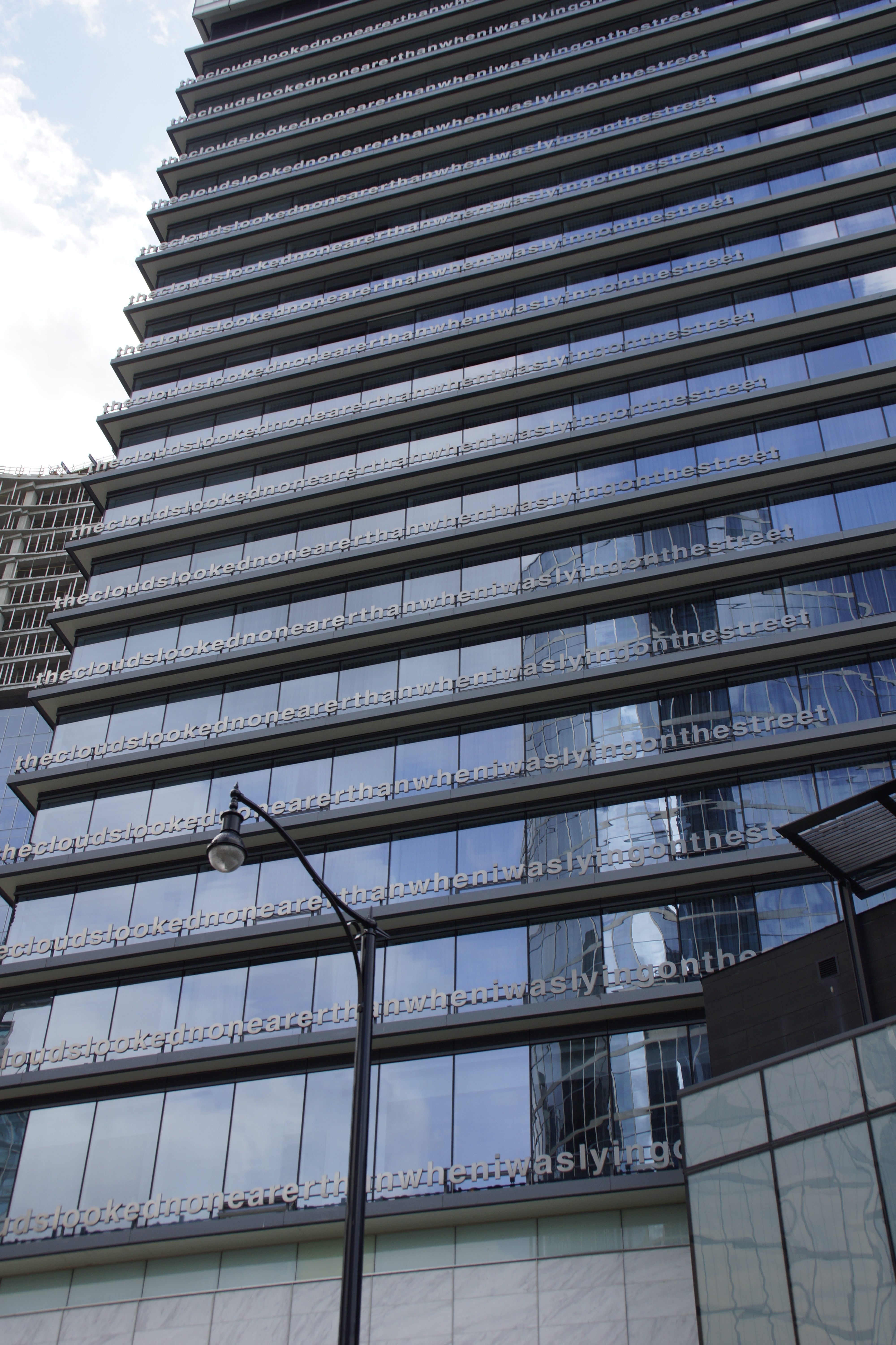 Fairmont Pacific Rim luxury condos features a Liam Gillick poem on two exterior facades. Also where Glee actor, Cory Monteith lived and died.
